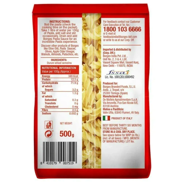 Borges Fusilli Durum Wheat Pasta 500g - Authentic Italian Pasta at Home
