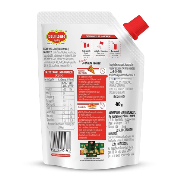 Del Monte Quality Pizza & Pasta Sauce Pouch 400g | Rich and Versatile