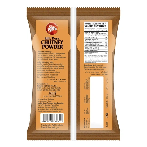Double Horse Idly / Dosa Chutney Powder Pouch, 100g