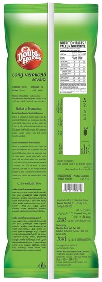 Explore the culinary possibilities with Double Horse Long Vermicelli, available in a 400g pack. This premium quality vermicelli, made from the finest ingredients, is a staple in many households for its versatility and ease of preparation. Whether you're making a sweet kheer, a savory upma, or a refreshing salad, Double Horse Vermicelli delivers a perfect texture that complements any dish.