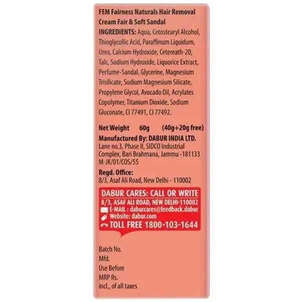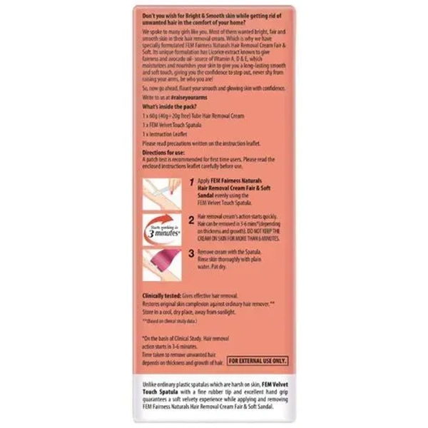 Fem Fairness Naturals Hair Removal Cream Fair& Soft Sandal Dry Skin, 40g