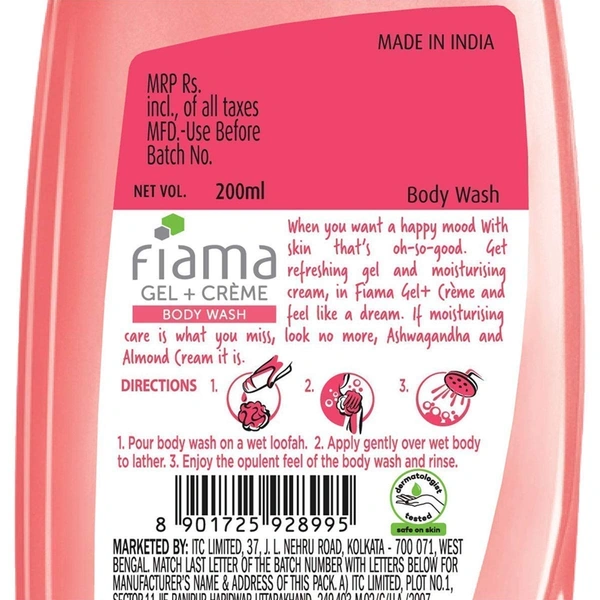 Fiama Gel + Creme Body Wash, Ashwagandha& Almond Cream, 500ml