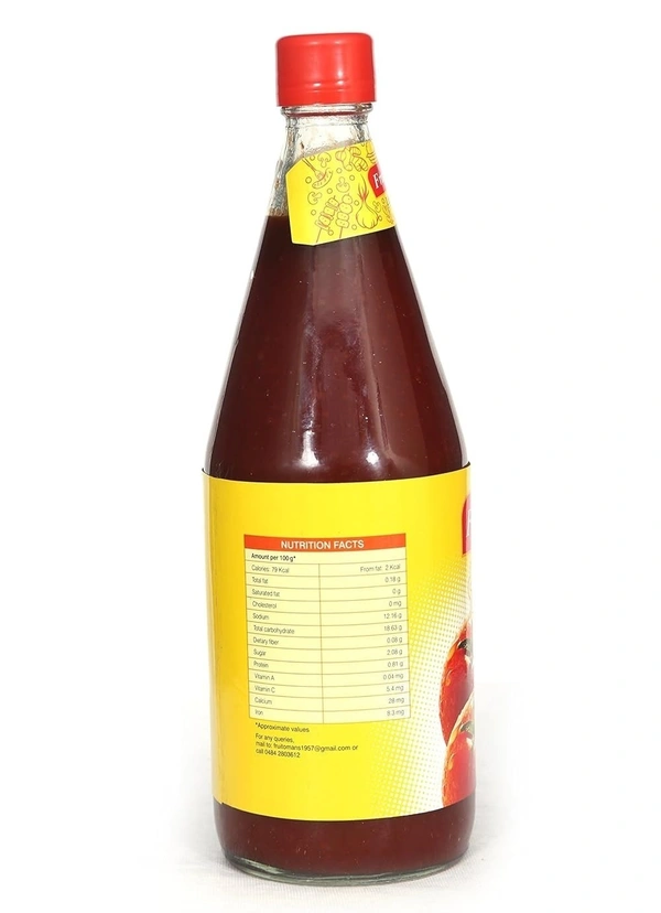 Elevate your meals with the unmistakable taste of Fruitoman's Tomato Ketchup, available in a convenient 1 Kg bottle. Made from sun-ripened, farm-fresh tomatoes, this ketchup blends a perfect balance of sweetness and tanginess that complements any dish.