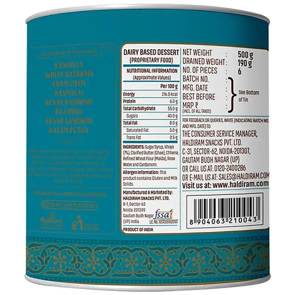 Haldiram's Indian Sweets Gulab Jamun Tin, 500g