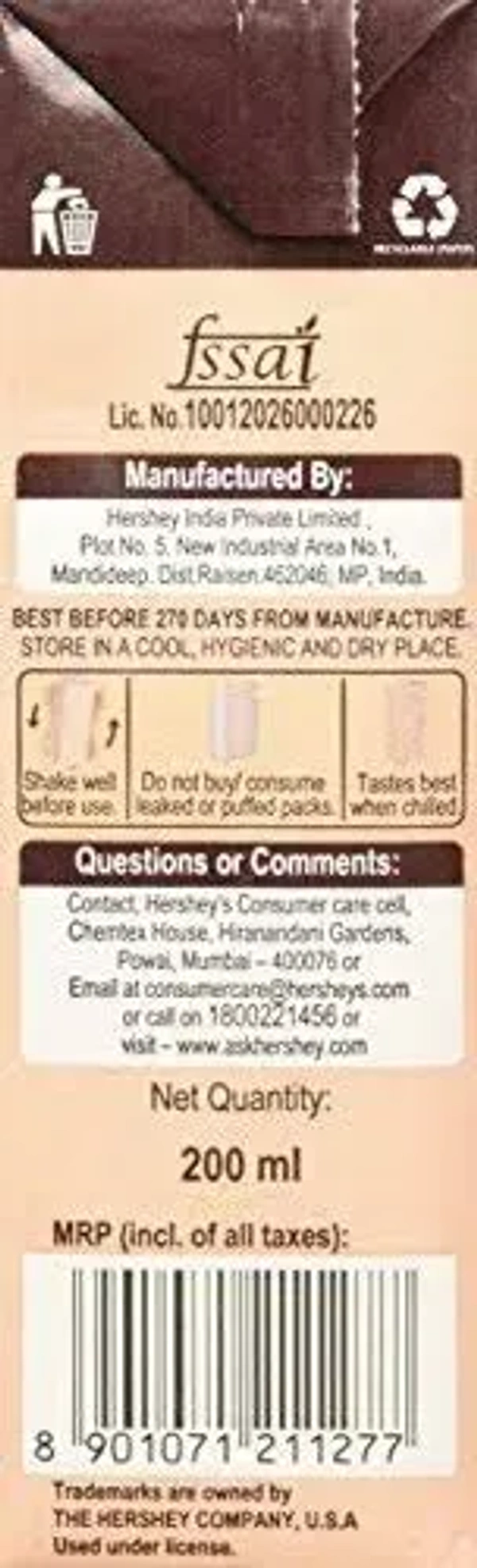 Hersheys Milk Shake Chocolate, 200ml