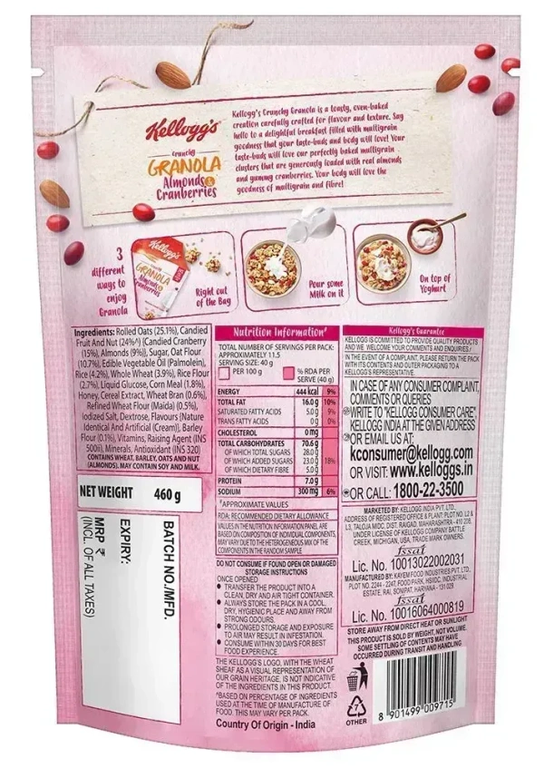 Kellogg's Crunchy Granola Almonds& Canberries, 460g