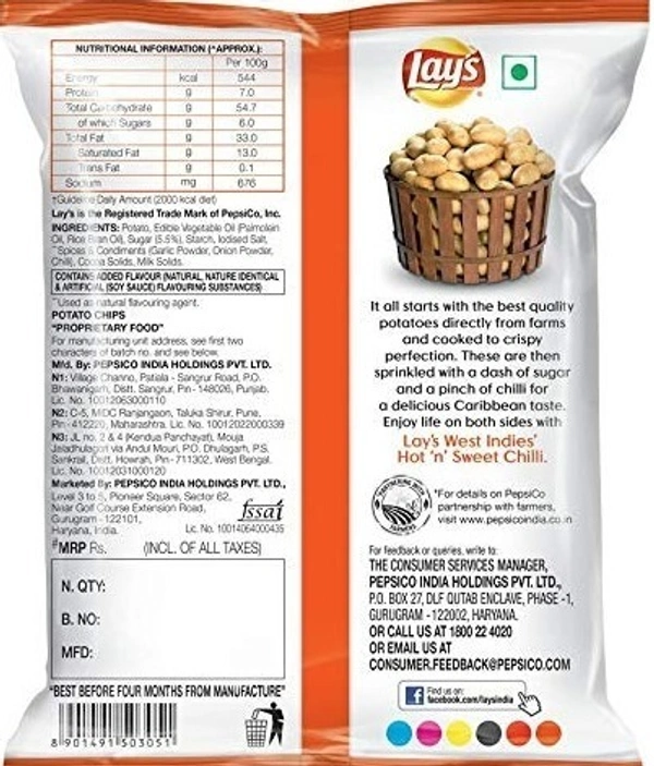Lay's West Indies Hot 'n' Sweet Chilli Potato Chips, 30g
