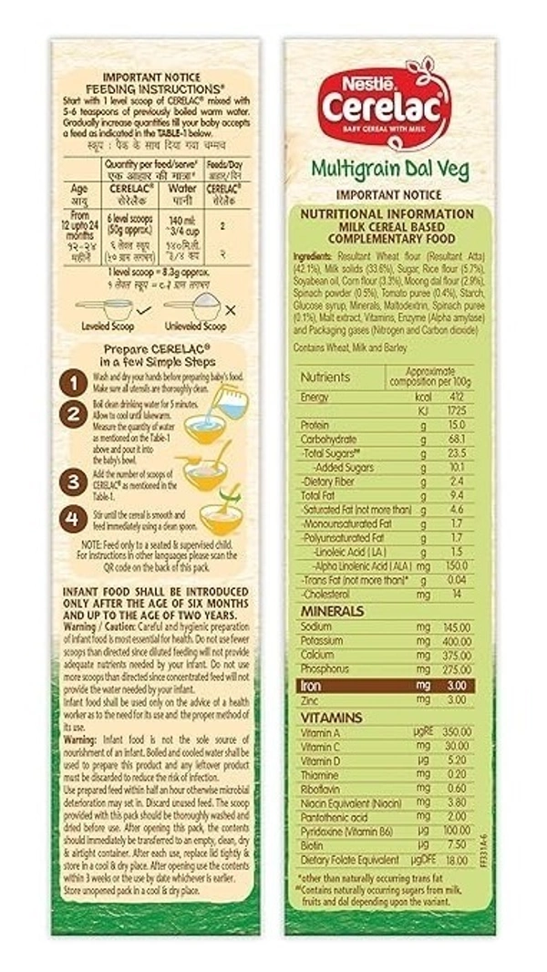 Nestle Cerelac Baby Cereal With Milk Multigrain Dal Veg From 12 To 24 Months Carton, 300g