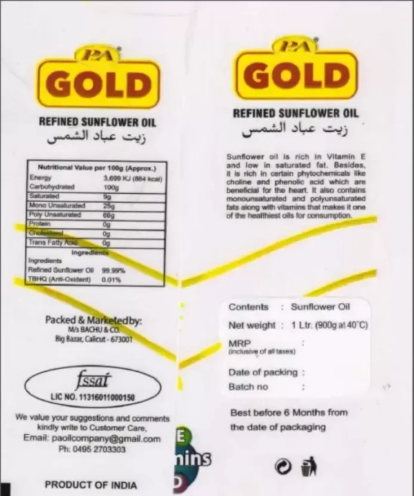 P.A Gold Sunflower Oil, 1L