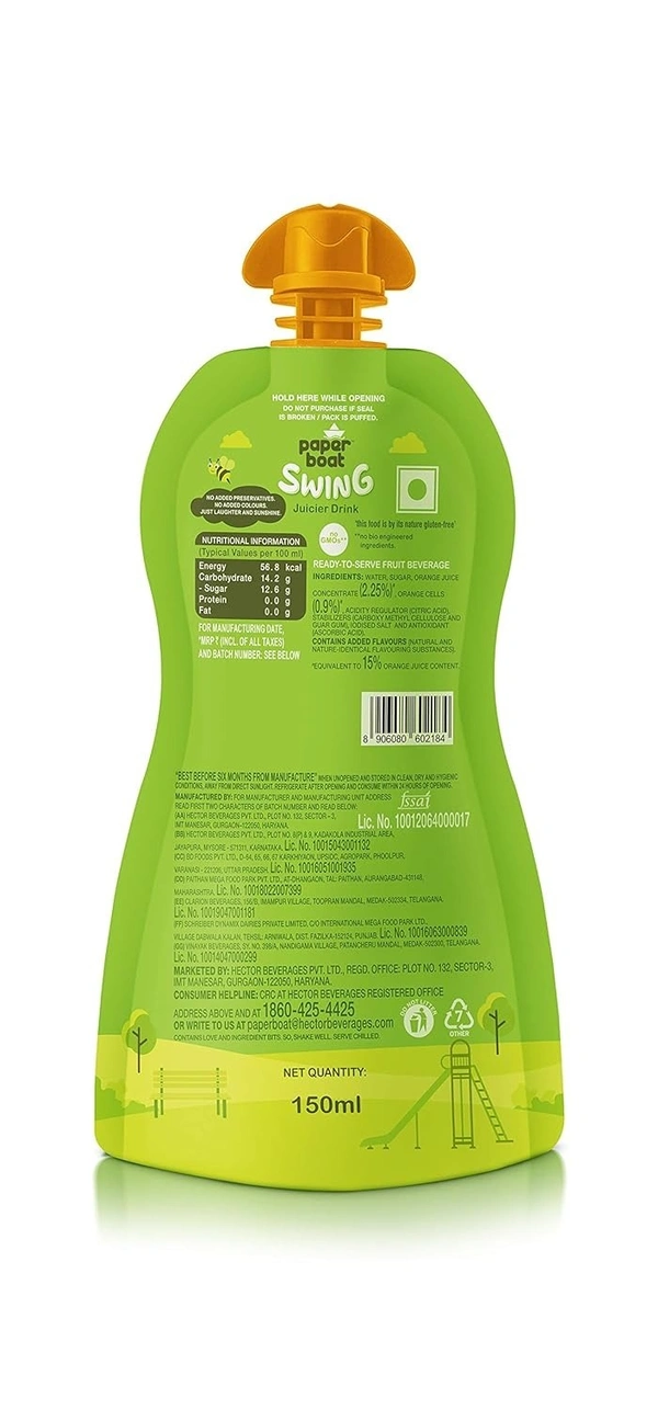 Paper Boat Jucier Drink Swing Pulpy Orange, 150ml
