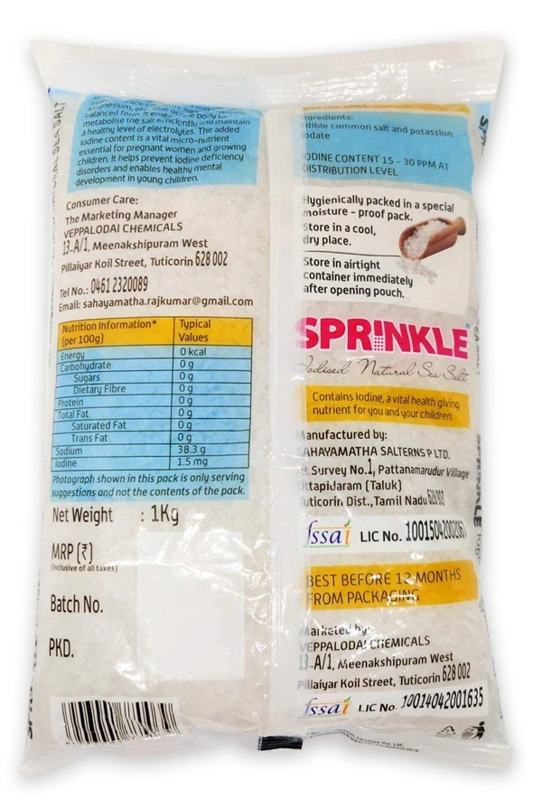 Sprinkle Crystal Salt Iodised Natural Sea Salt, 1 kg