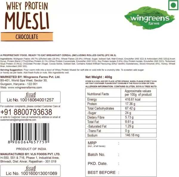 Wingreens Whey Protein Muesli Chocolate