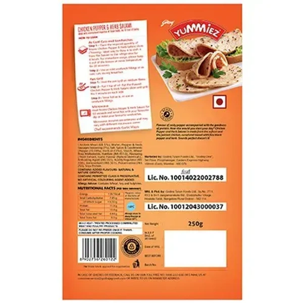 Yummiez Chicken Pepper& Herb Salami, 250g